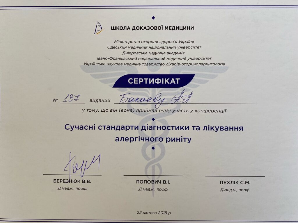 З 2010 до 2012р.р. клінічна ординатура за спеціальністю оториноларингологія