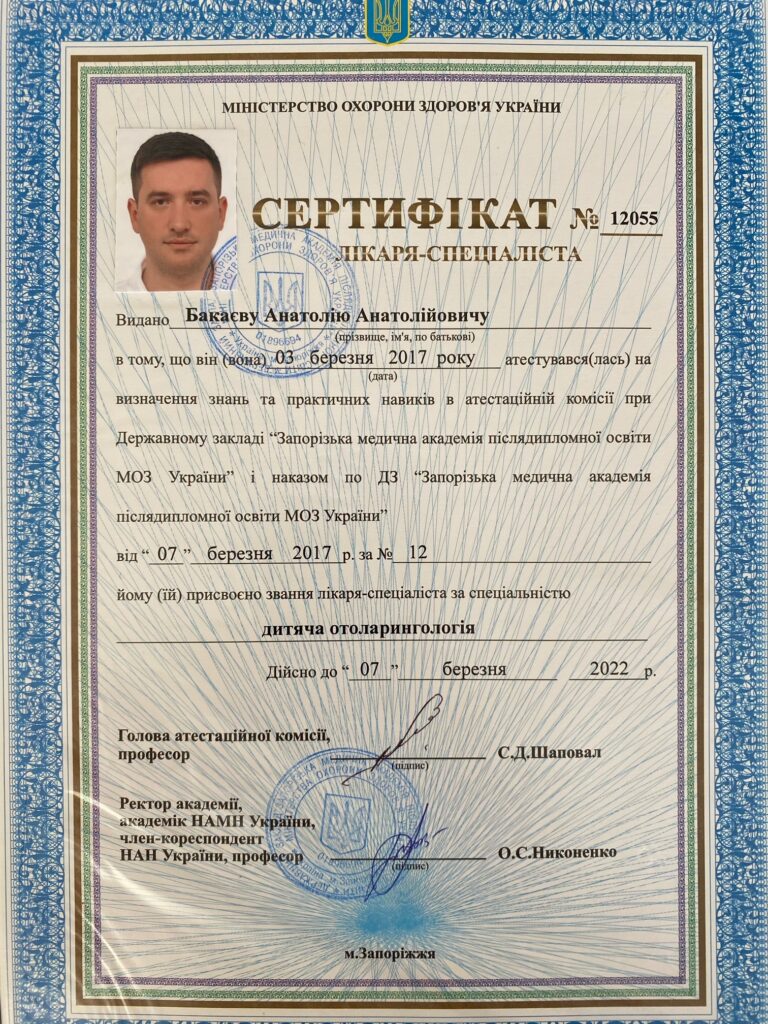З 2008 до 2010р.р. інтернатура за спеціальністю оториноларингологія