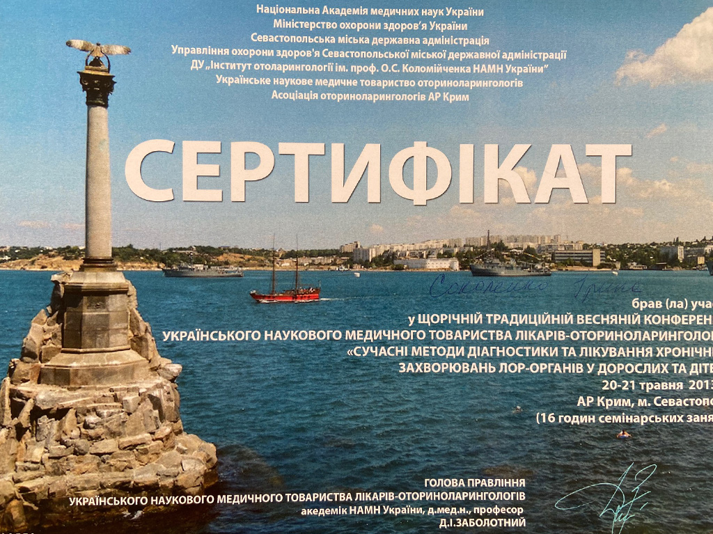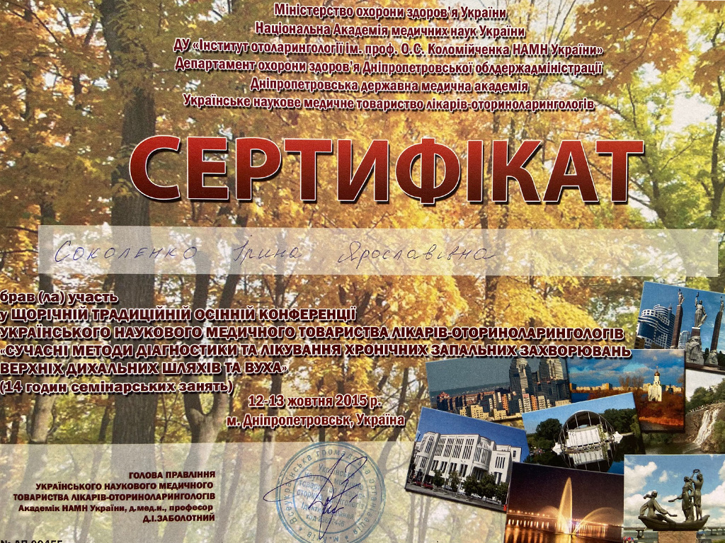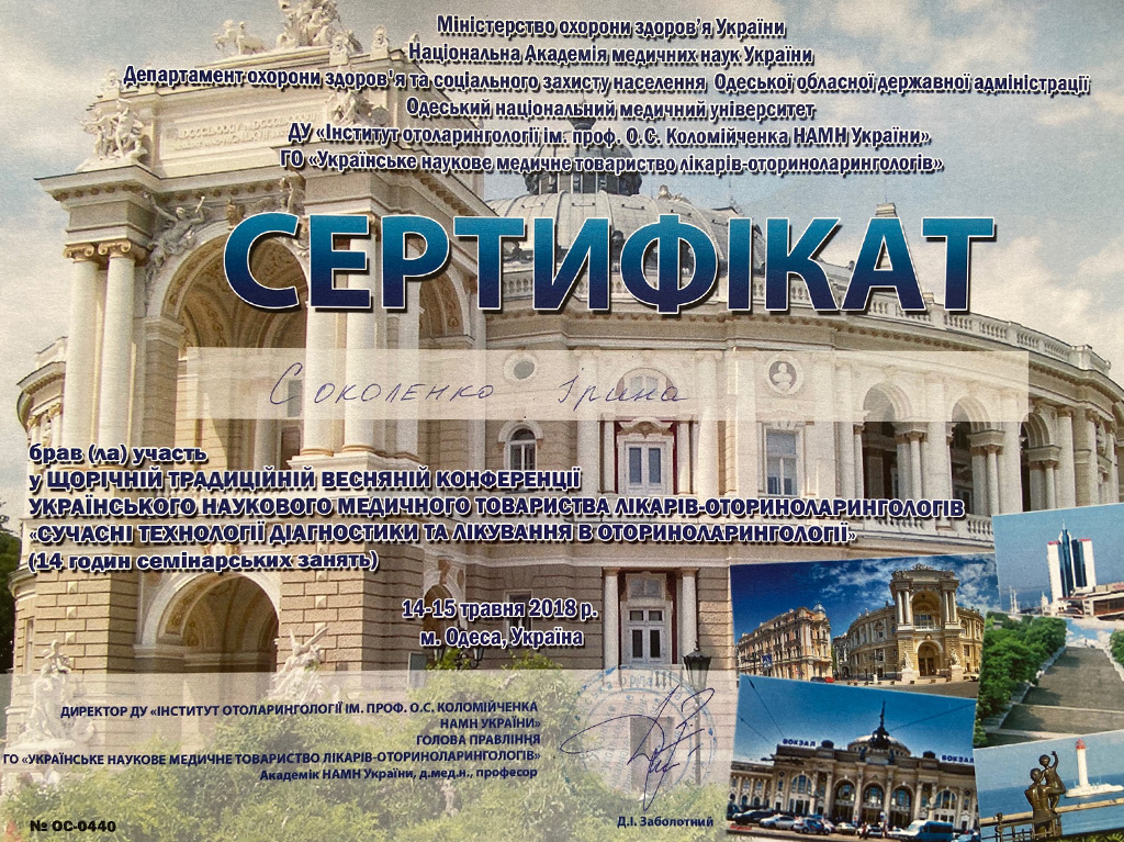 Член Украинского общества отоларингологов